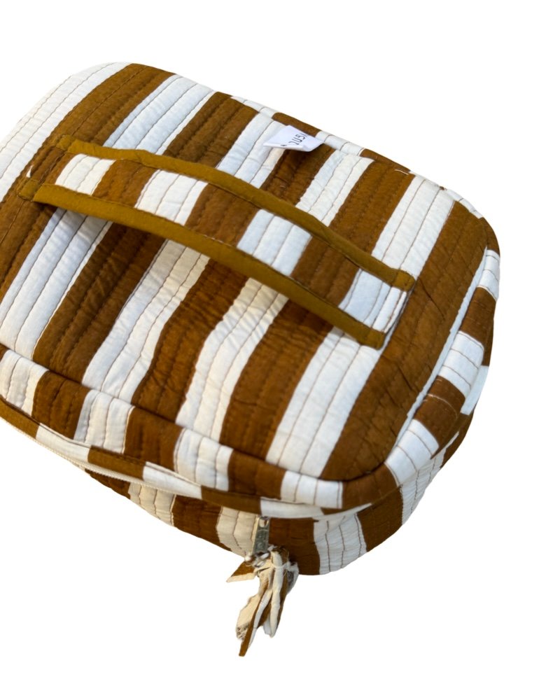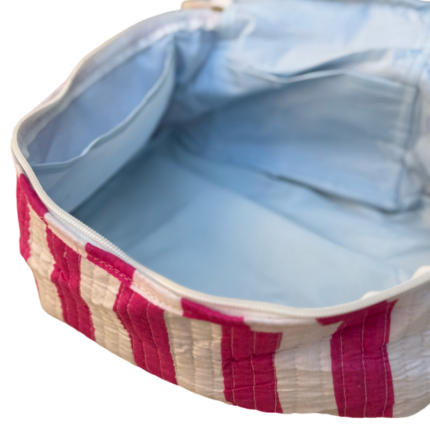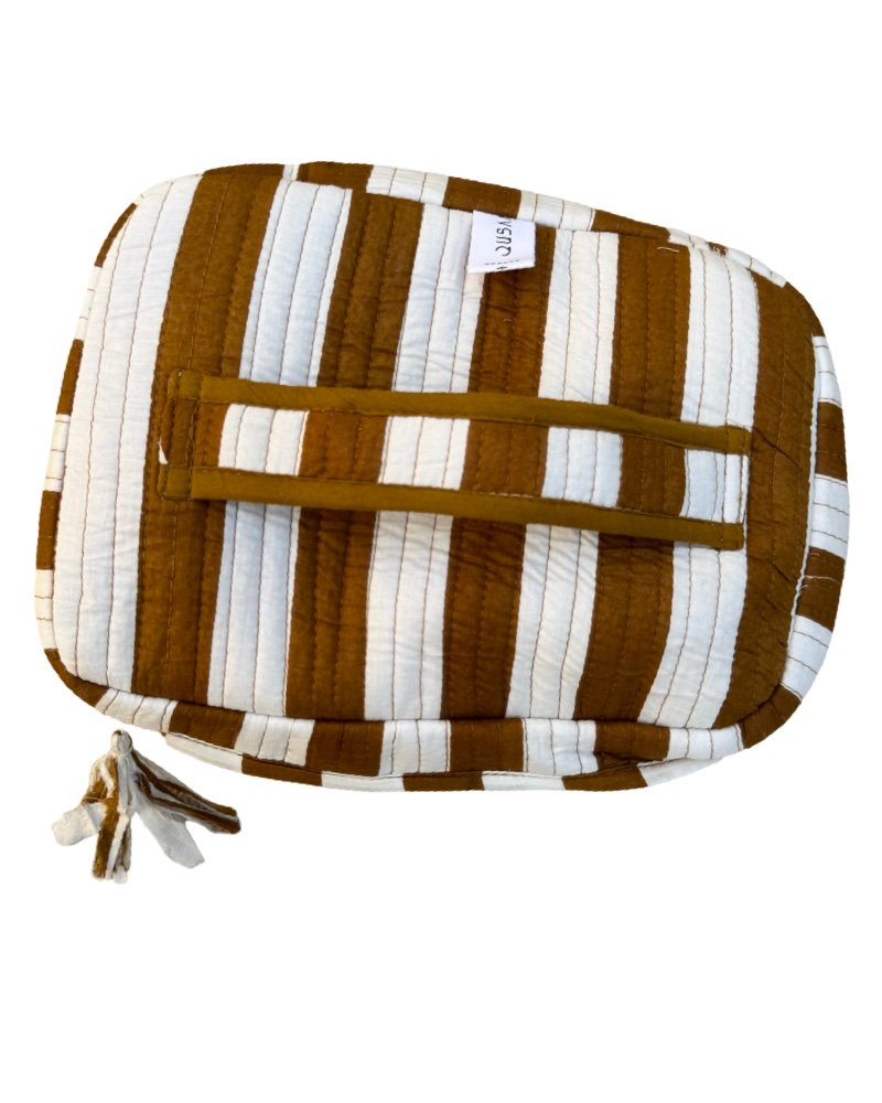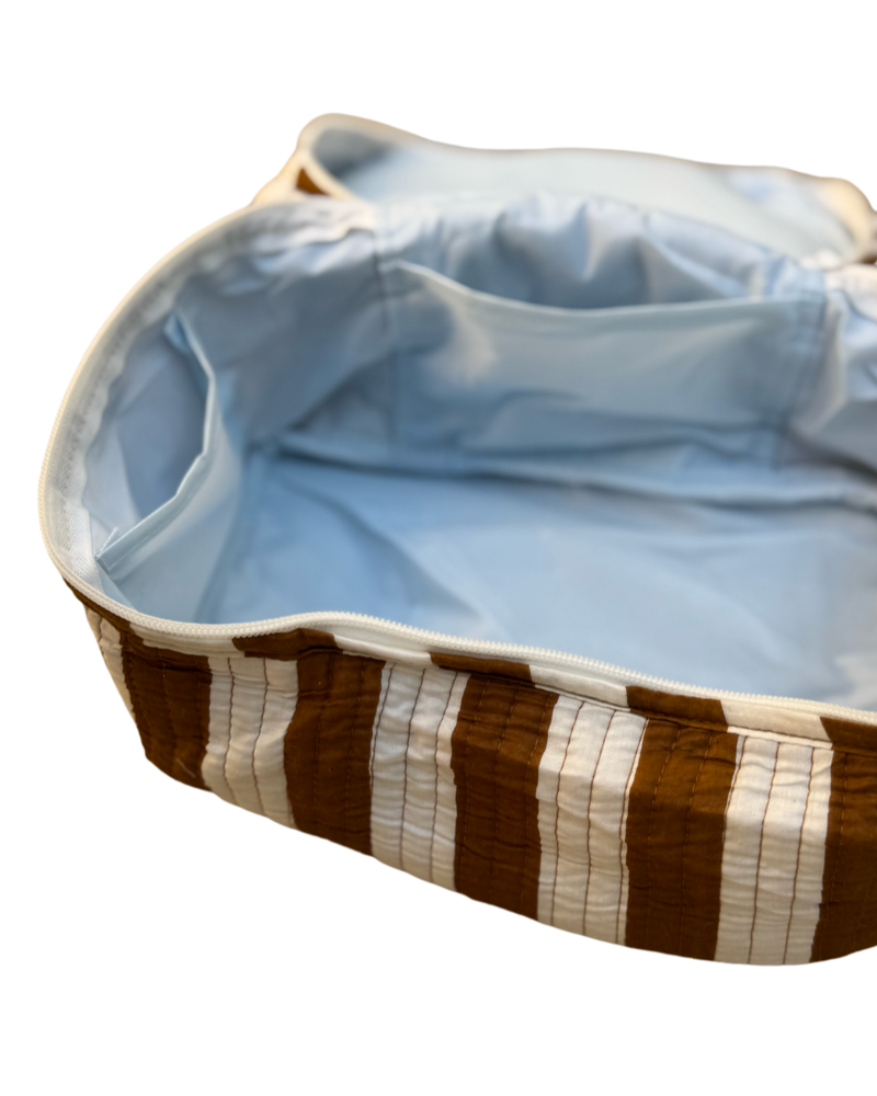 Fabric: cotton with water resistant interior and side pocketsWash care: Machine wash in cold water using mild detergent.