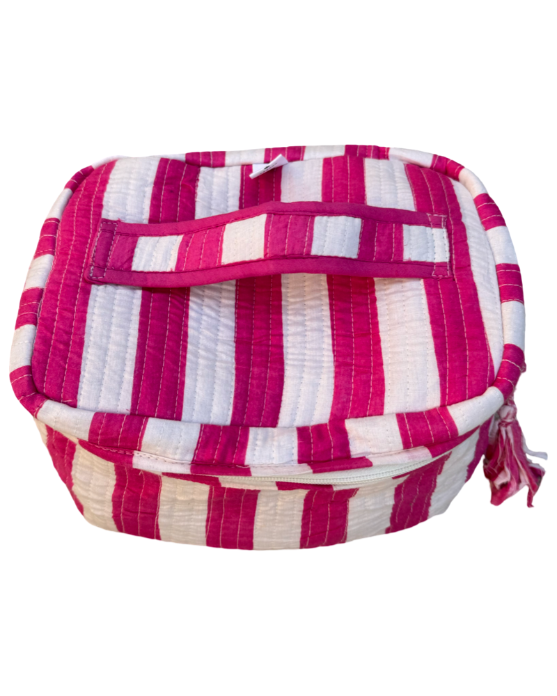 Fabric: cotton with water resistant interior and side pockets