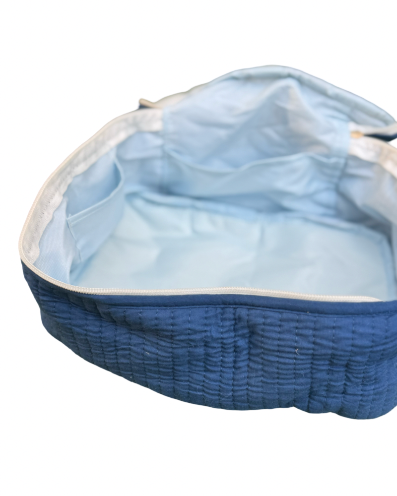 Fabric: cotton with water resistant interior and side pockets
